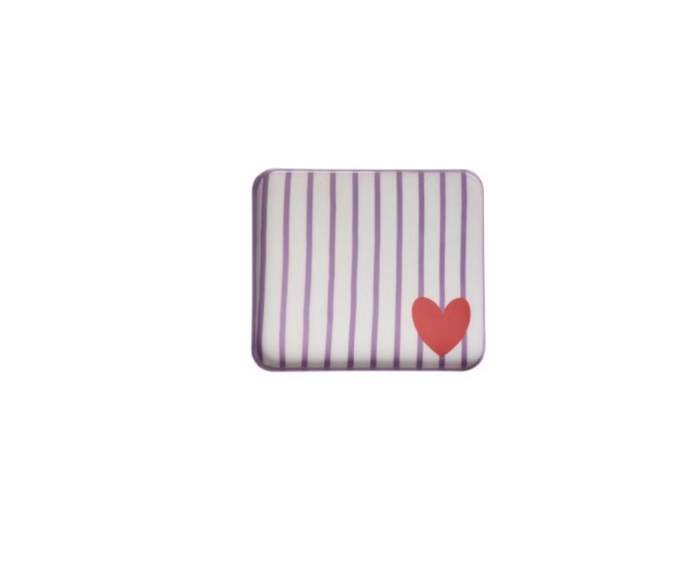 PLATEAU RAYURES VIOLETTES ET CŒUR ROUGE
